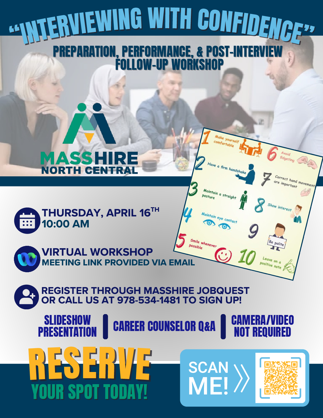in-person specialized recruitments for guardian angel, on tuesday 4/14/2026,4/28/2026, & 5/05/2026 from 12:30pm-3pm here in our office at the North Central Career Center, 100 Erdman way, Leominster MA 01543